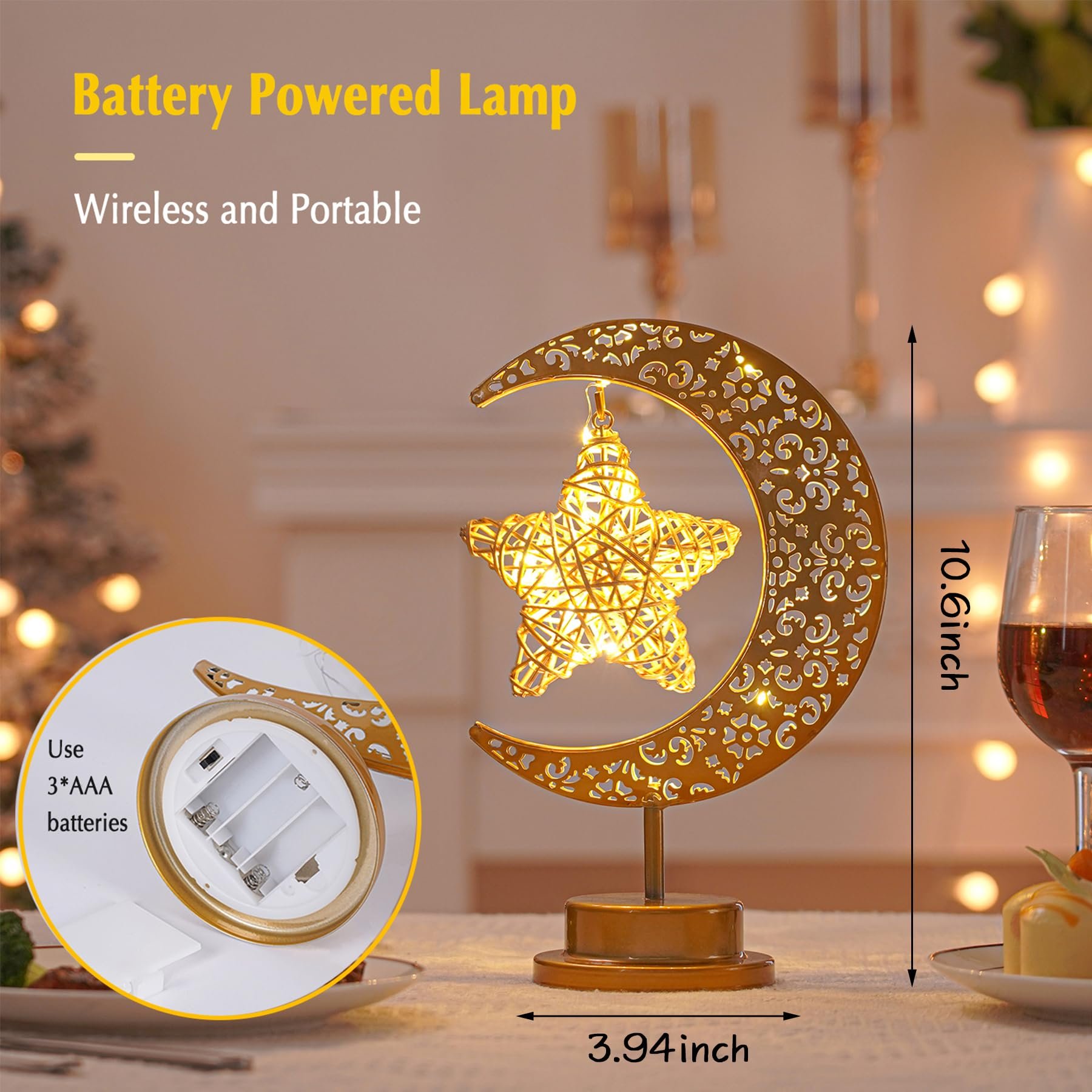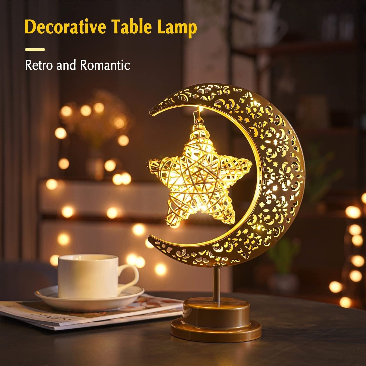 🌙 Romantic Moon Star Lamp: This led lamp has a unique shape, which looks very fashionable and retro when lit. Not only can be used as lamp for bedroom to create a warm atmosphere, but also can be used as holiday decorations and gifts.