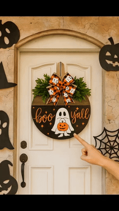 Spooktacular Halloween Wreath – 12" Wooden Pumpkin & Ghost Door Hanger!