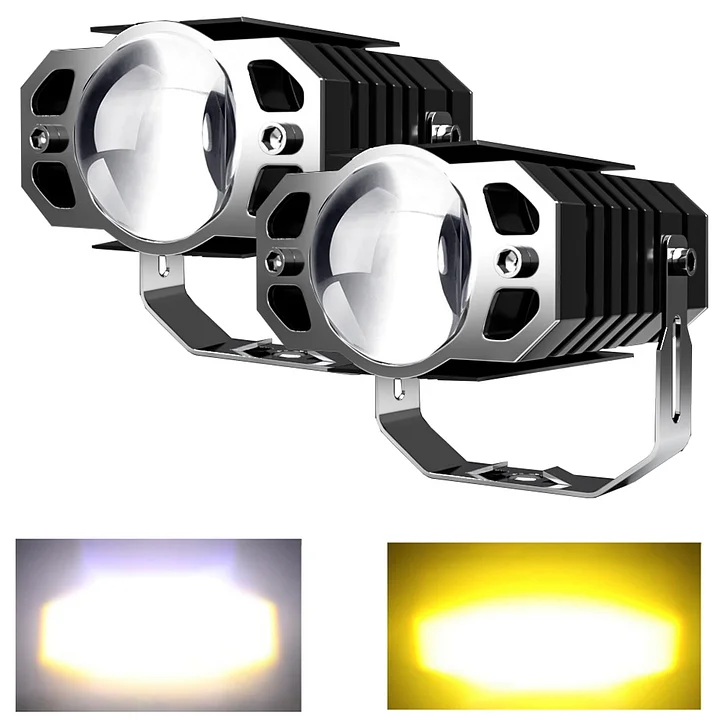 Selling point: bifocal lens--special bifocal shape design and special optical lens, which help light refraction and focus, significantly improve the condensing effect, and provide enough brightness for night driving. Special appearance design, double tail streamline shape + top fin Chip design, obtain the best heat dissipation effect, greatly prolong the service life of the product Three-line two-color design - amber light penetrates strongly in rainy and foggy days; cool white light makes travel like daytime, two-color design makes your driving more comfortable, and timely switch lights to adapt to different environments .