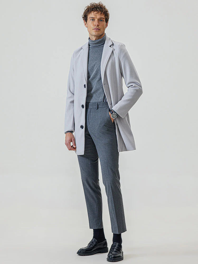 QUALITY FABRIC: This men's coat is made of a premium blend fabric that is soft and comfortable to the touch and has a skin-friendly, durable acetate fiber lining throughout. It will give you a great wearing experience and keep you warm in the cold winter.