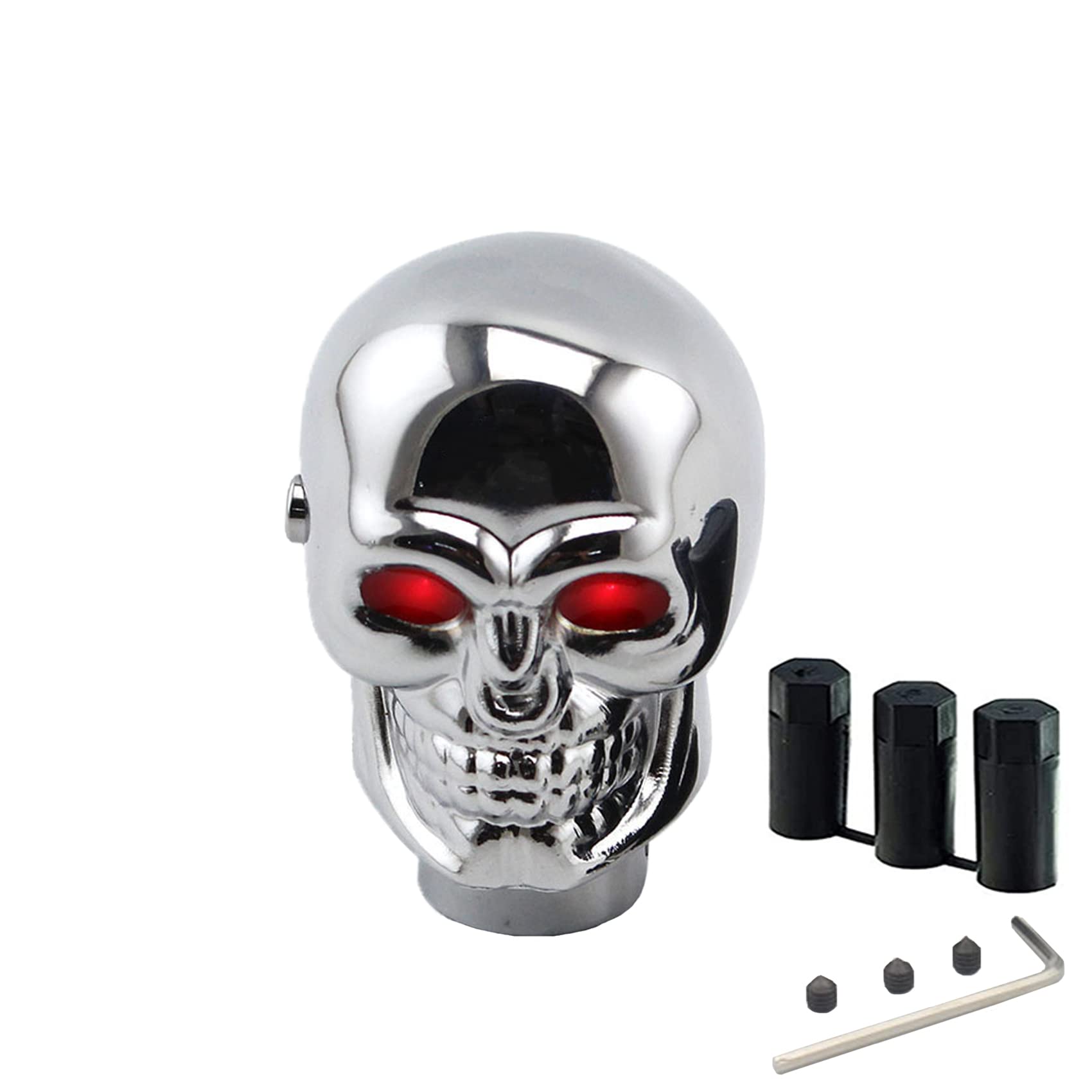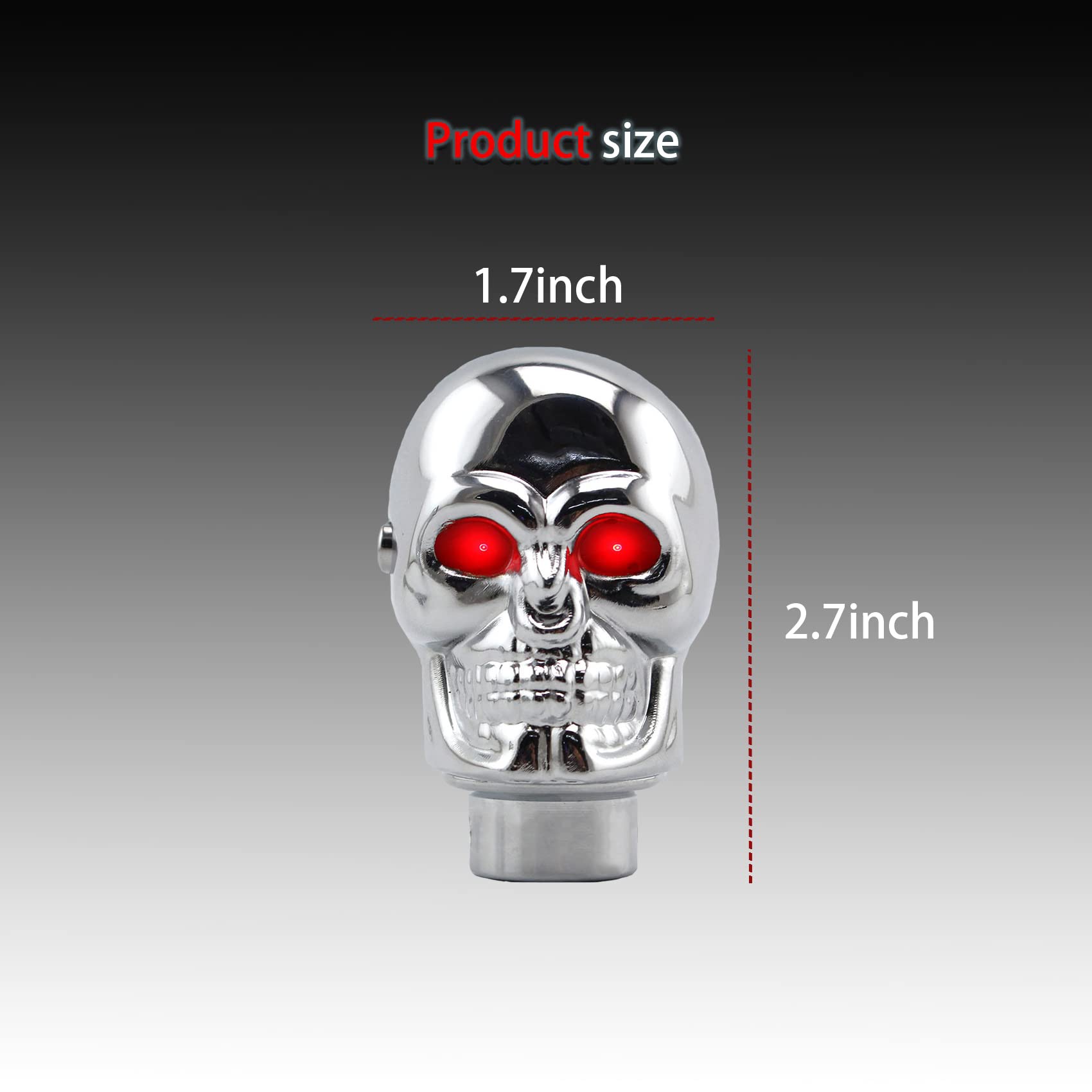 [Appearance of Skull Shift Knobs]: Universal Skull Head Gear Shift Knobs eyes can emit different colors of light, red and blue. Show your personal taste and make your car more special and cool. It is the best gift for friends, family and classmates.