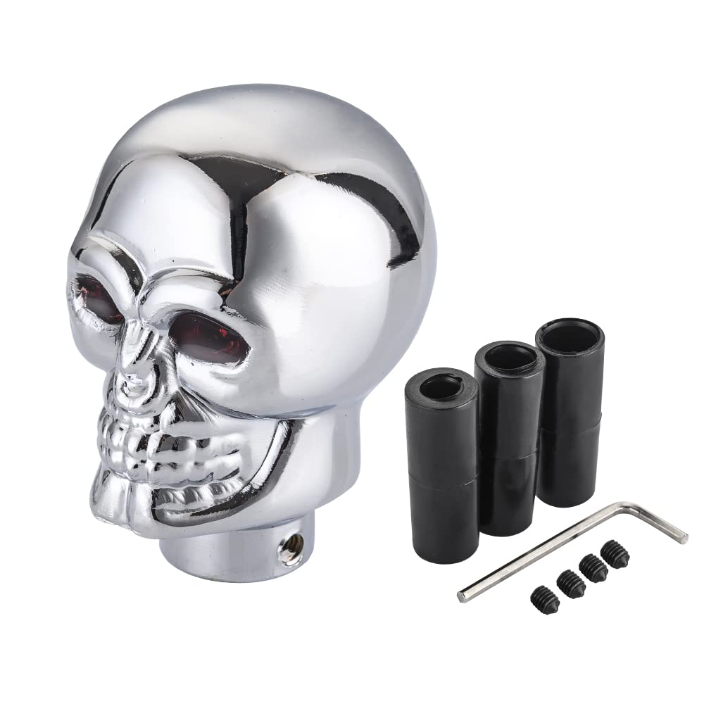 [Widely applicable]: Skull Gear Shift Head Resin Shift Knob size 2.7 * 1.7inch, this automatic shift lever head is equipped with a set of screws and a hex wrench, and three rubber adapters (size: 8mm, 10mm, 12mm/0.32, 0.39, 0.47 inch), which are applicable to most MT AT cars, SUVs, trucks, etc.