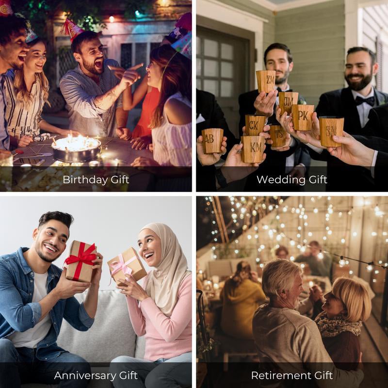 Charred Rubberwood Craftsmanship:Each whiskey cup is meticulously handcrafted from premium white oak, charred to perfection. This process emulates the aging barrels of fine bourbons, enhancing the aroma and flavor profile of your whiskey for a more nuanced drinking experience.